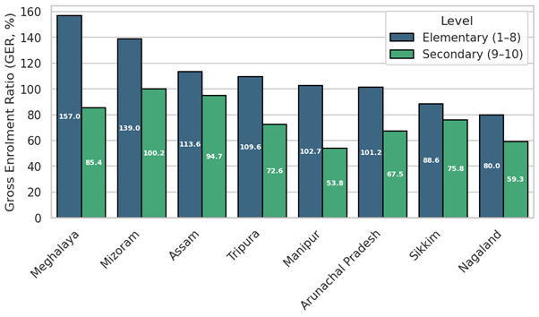 Figure 2: Gross Enrolment Ratio (GER) of Tribal Students in Northeastern States